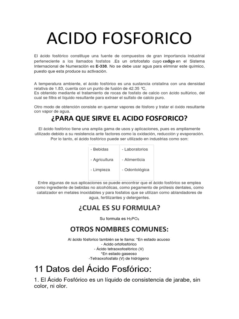 Acido Fosforico PDF Ácido fosfórico Sustancias químicas