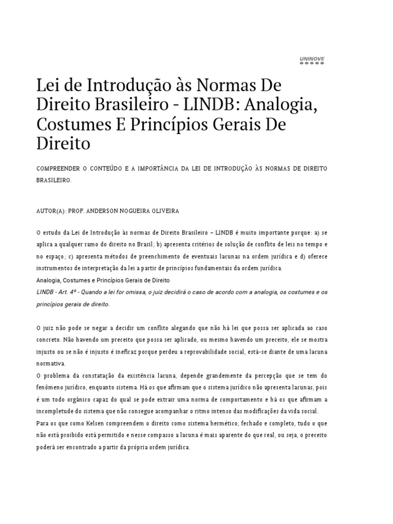 02 LINDB Analogia Costumes e Principios Gerais de Direito PDF Analogia Método científico