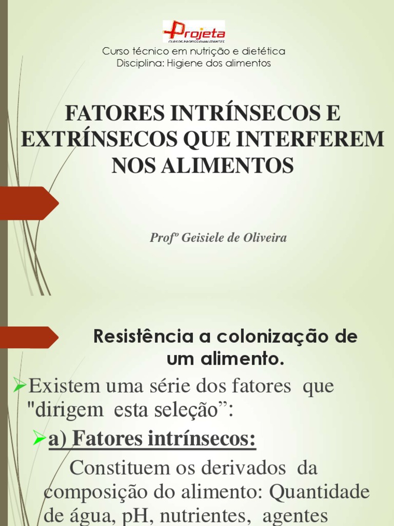 Aula Fatores Intrínsecos e Extrínsecos Que Interferem Nos Alimentos PDF