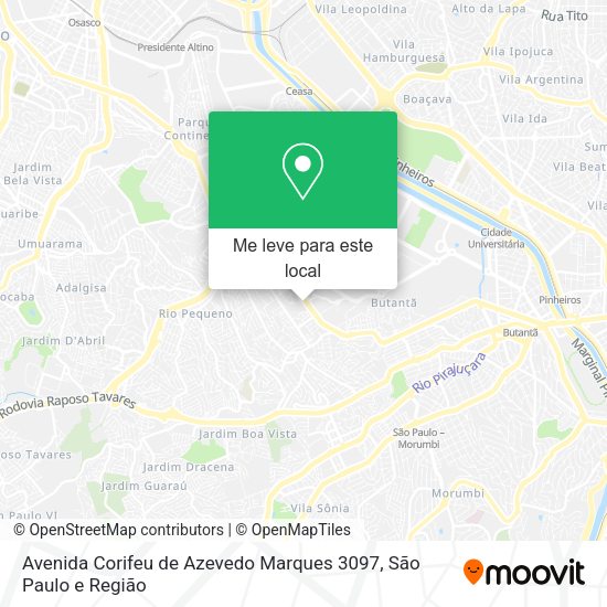 Como chegar até Avenida Corifeu de Azevedo Marques 3097 em Rio Pequeno de Ônibus, Metrô ou Trem?