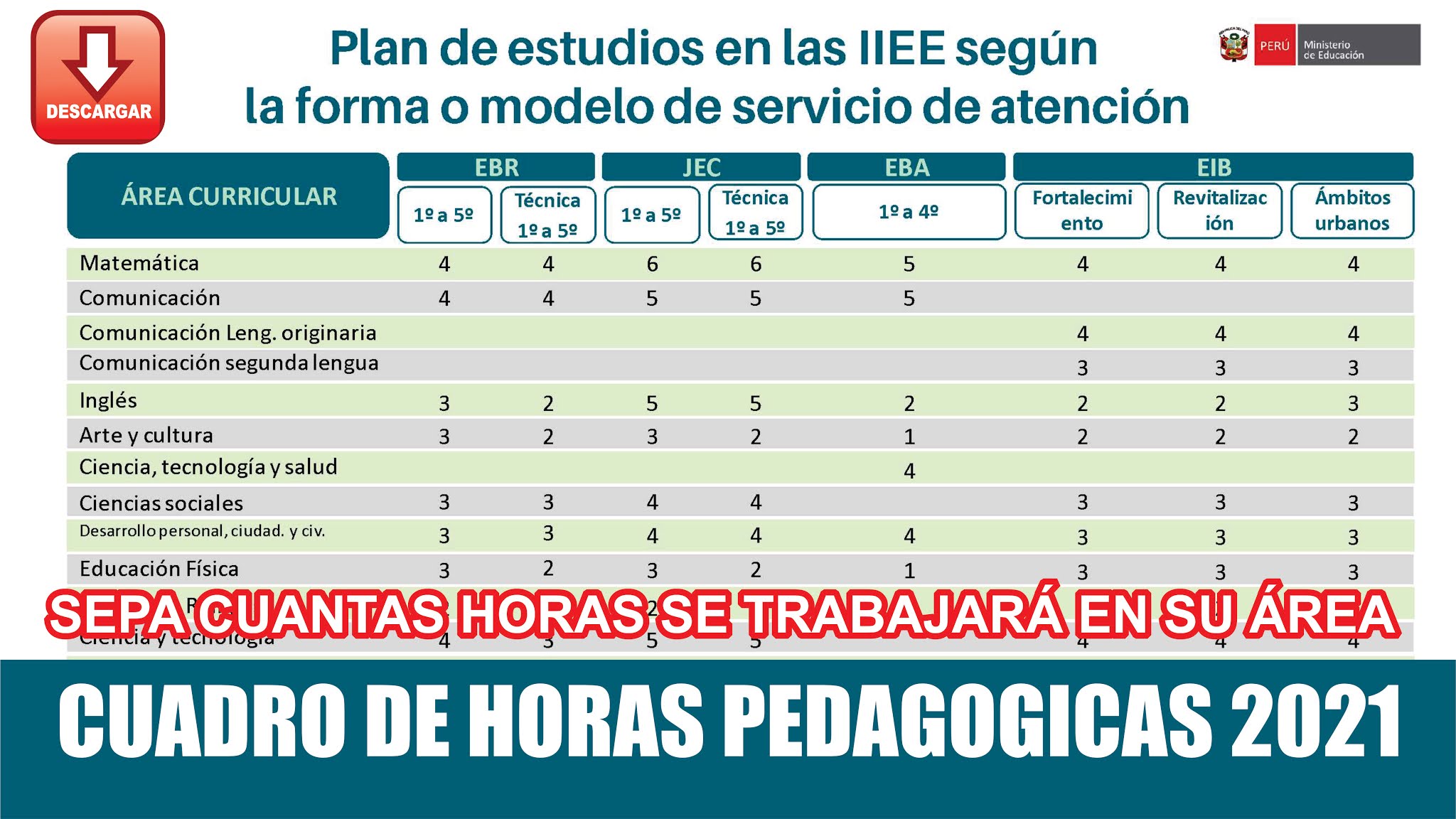 Cuadro de horas pedagógicas 2021 actualizado por áreas / DESCARGA AQUI GRATIS Siagie Cusco