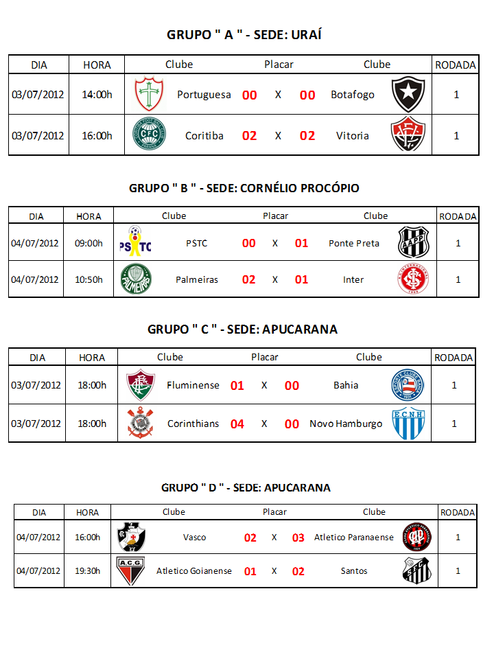 ESPORTES APUCARANA RESULTADOS PRIMEIRA RODADA COPA BRASIL SUB15