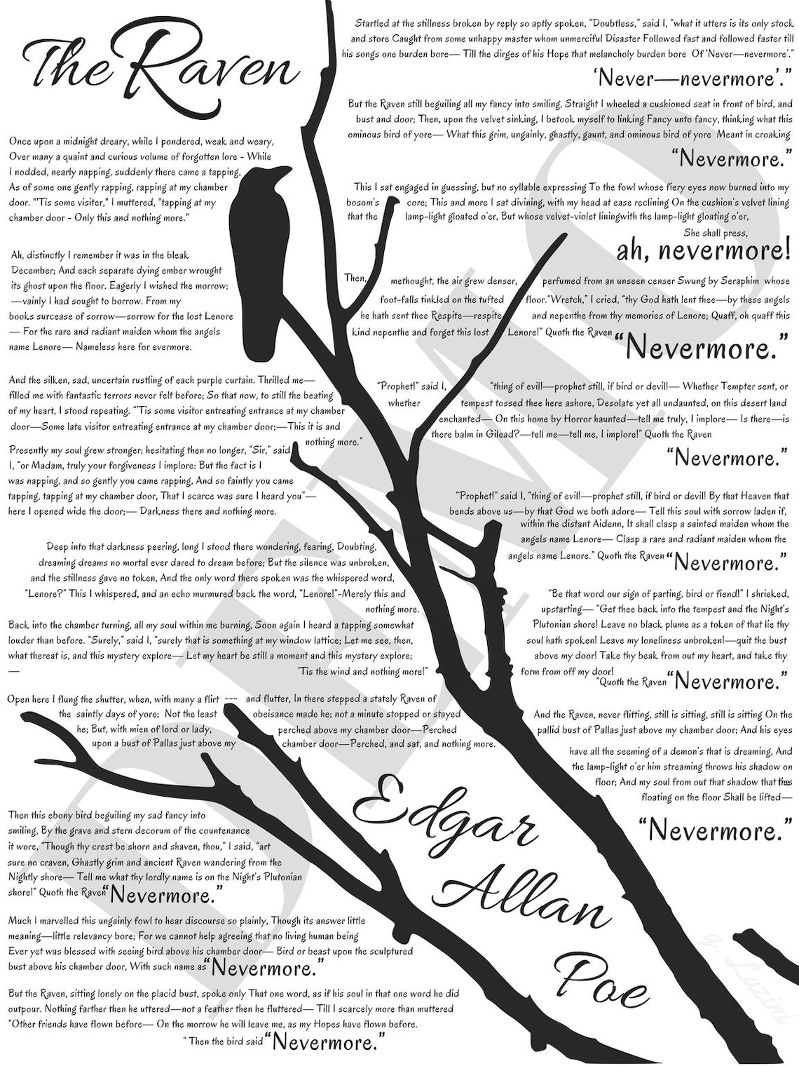 Typography poster The raven Poem Print Nevermore Art Edgar Allan Poe