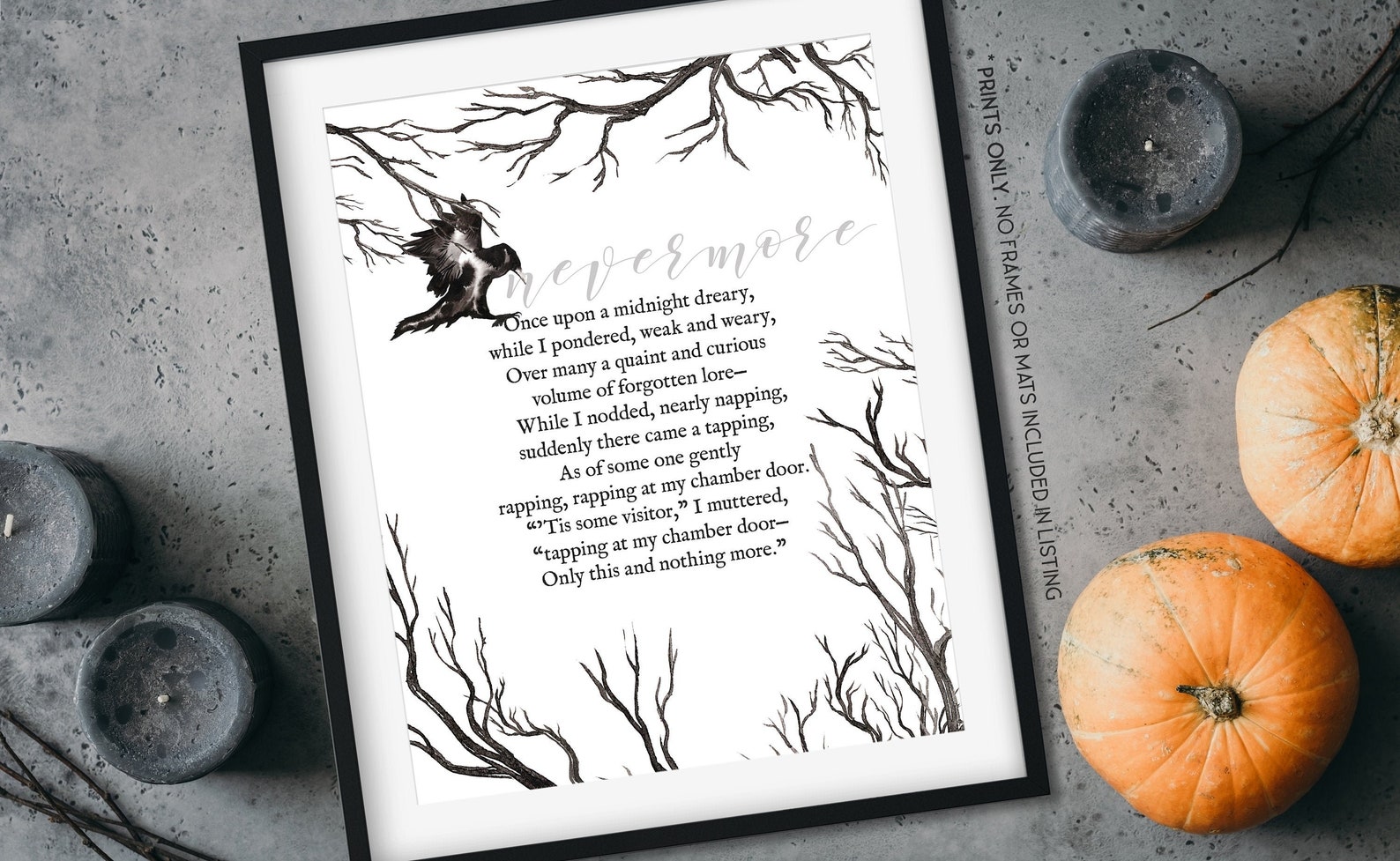 Edgar Allan Poe Gifts The Raven Nevermore Creepy Poetry Poem Wall Art Goth