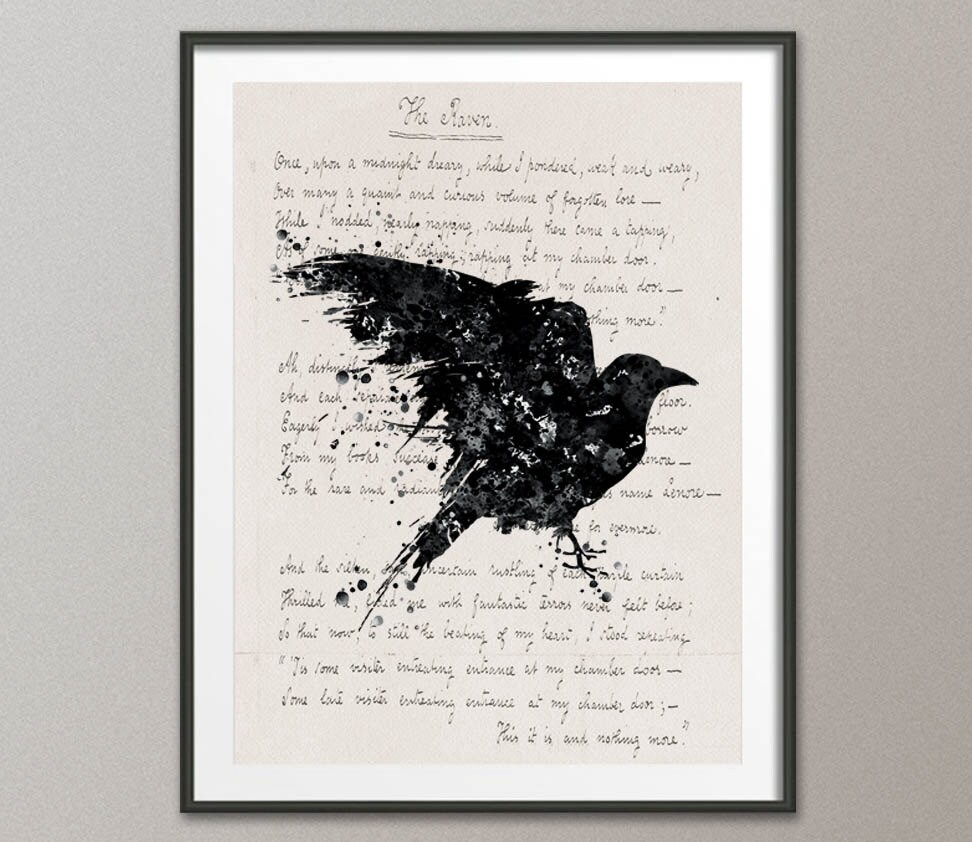 Crow The Raven Poem Edgar Allen Poe Nevermore Watercolor
