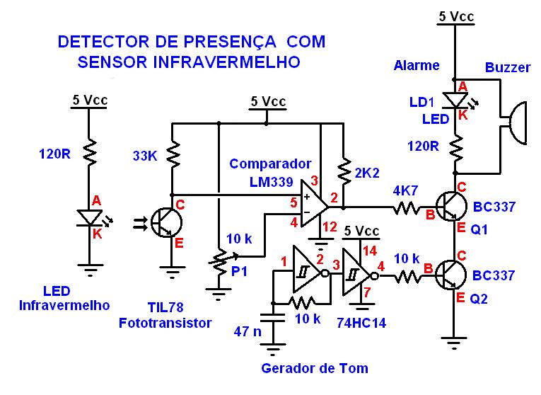 Eletrônica & Microcontroladores Detector de Presença com Sensor Infravermelho TIL78