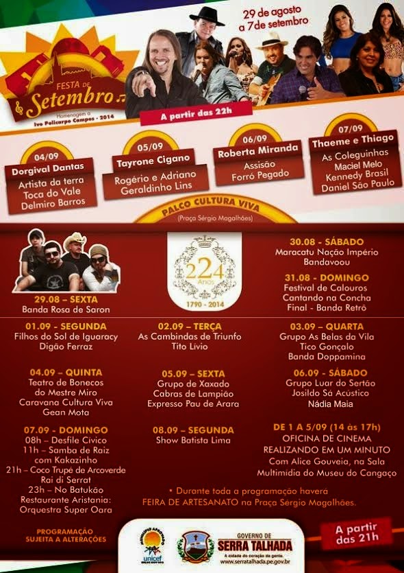 Notícias em primeira mão. Divulgada programação oficial da Festa de setembro 2014 em Serra Talhada
