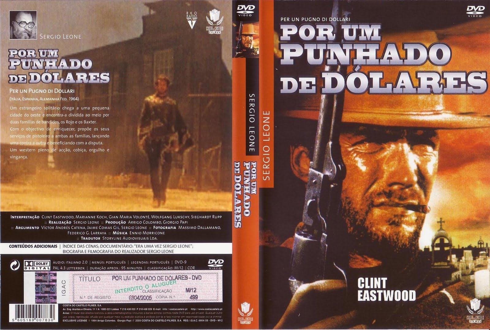 Por Um Punhado de Dólares. O lendário "Homem Sem Nome" de Clint Eastwood faz sua grande estreia neste "novo gênero de faroeste" (Motion Picture Herald) emocionante e repleto de ação, do aclamado diretor de Três Homens em Conflito e Por uns Dólares a Mais. Impregnado de duelos furiosos, atuações dinâmicas e fotografia.
