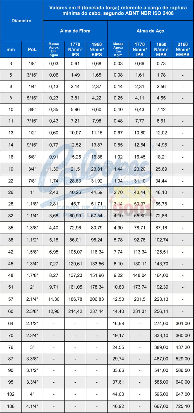 Lingas Cabo de Aço (tabela) Fuertes Ind
