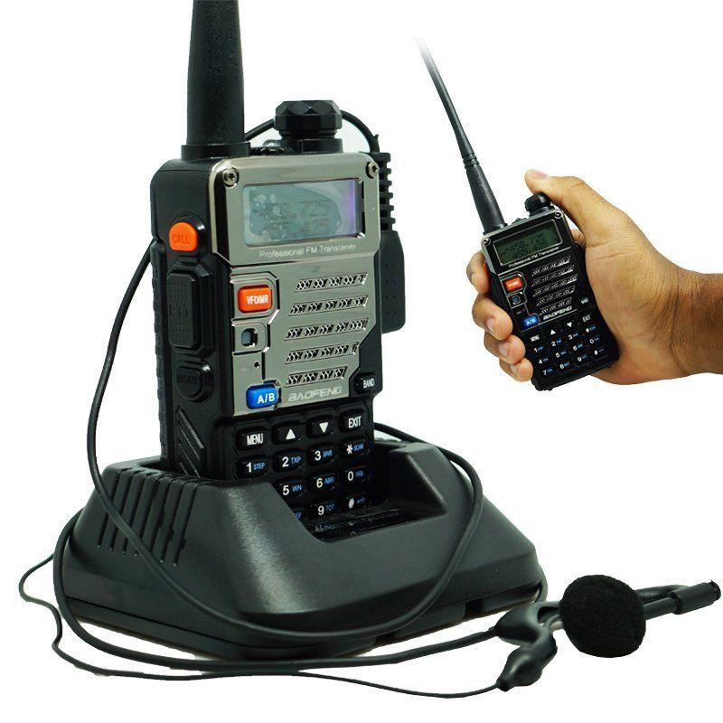 Rádio Comunicador HT Profissional Dual Band UHF VHF FM Baofeng UV5RE Preto + Fone de Ouvido